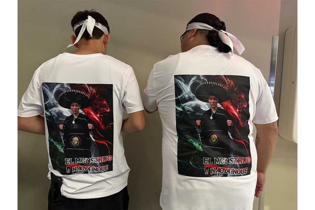 試合当日、会場には自作のモンスターグッズを身につけた別のメキシコ系米国人親子がいた。Tシャツにはなぜかメキシカンハットを被る井上の写真がプリントされている。頭には「NAOYA INOUE」と書かれた日の丸ハチマキ。2023年7月のスティーブン・フルトン(米国)戦で17歳の息子エンジェル・ユクピシオさんがまず魅了され、その影響を受けて父親も大ファンになったという。