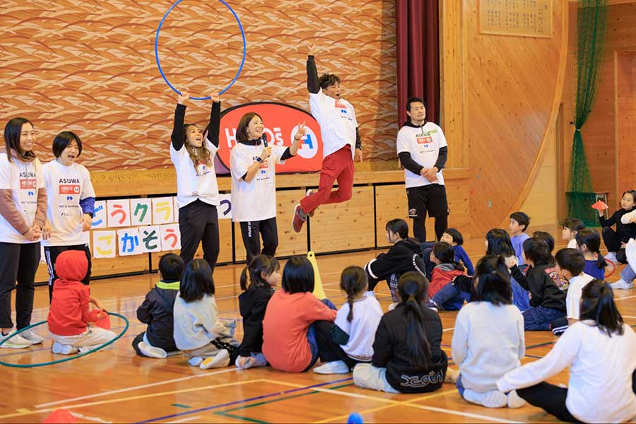 今回、私たちアスリートが立ち上げた一般社団法人「ASUWA」は、能登半島にある輪島市と能登町でのイベントを企画・主催した。このイベントの目的は、能登の子どもたちに思いきり体を動かす機会を提供し、楽しい時間を過ごしてもらうこと。そして能登を想うアスリートの存在を伝え、少しでも心の支えに、そして震災前の「当たり前の日常」を取り戻す一歩につながってほしい、という願いが込められていた。