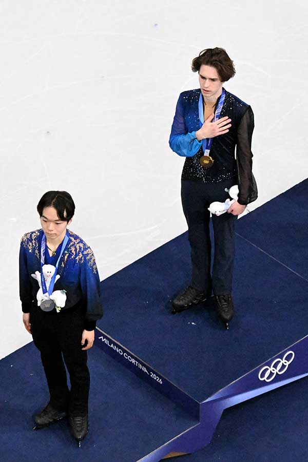 【画像】「あれどうやったんだ?」 なぜか手が空き…鍵山優真が表彰台で称賛された「謎技術」