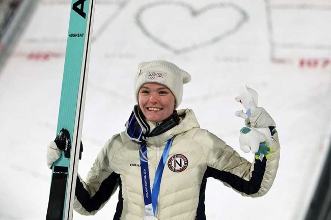 五輪表彰式、大会側の“粋な演出” ジャンプ女子3人の背後、よ~く見ると…浮かび上がるモノとは