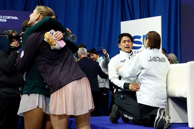 【画像】「なんで」「すごい日本人感」 金メダル決定の瞬間、りくりゅうのまさかの体勢