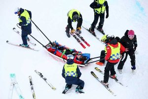五輪で恐怖のアクシデント 転倒でブレード直撃、出血「顔面骨折か」 担架で搬送…NHK実況席「何もないことを祈りましょう」【Sトラック】