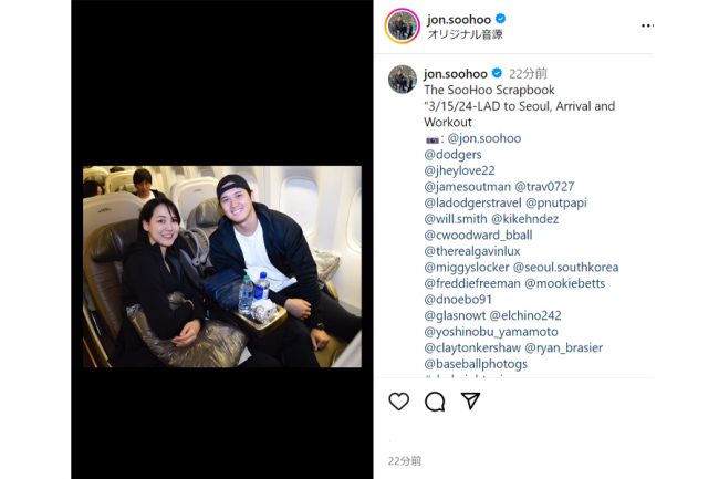 大谷翔平&妻の機内2ショットを球団カメラマン公開 隣席で顔を寄せ合い…韓国移動で爽やかな1枚 2024.03.16 著者 : THE ANSWER編集部 キーワード : ドジャース • 大谷翔平 Twitter Facebook B!Bookmark この投稿をInstagramで見る Jon SooHoo(@jon.soohoo)がシェアした投稿 【画像&動画】「飛行機の席も隣同士」「尊すぎる」 大谷翔平&妻の新たな写真も公開された球団カメラマンの実際の投稿 こちらもオススメ▶︎大谷翔平、自ら披露した“お洒落な機内食”にファン虜「え!こんな投稿するんww」