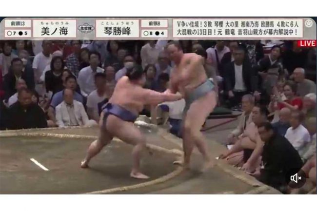 【画像】「やっぱり目立つよ」 真っ赤な服でスマホを構え…デヴィ夫人が溜まり席で観戦する実際の様子(画像はABEMA大相撲公式Xより)