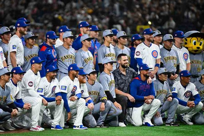 「こういうのほんと感動!!!」 中継の最後に映ったカブスと阪神が交流するシーン【写真:中戸川知世】