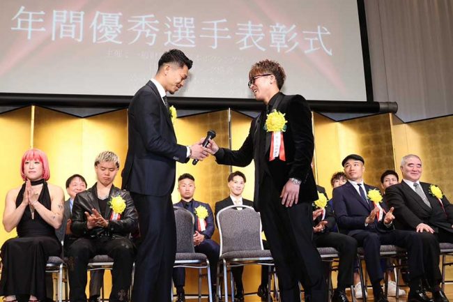 井上尚弥、中谷潤人に宣戦布告「1年後の東京Dで盛り上げよう」 決戦の地も宣言、中谷も「是非、お願いします」【年間表彰式】 2025.03.31 著者 : THE ANSWER編集部 キーワード : 井上尚弥 Twitter Facebook B!Bookmark 【画像】「中谷君、1年後の試合へ盛り上げよう!」 井上尚弥が中谷潤人に宣戦布告した実際のシーン 【写真:山口比佐夫】 こちらもオススメ▶︎井上尚弥の最新ニュースをチェック