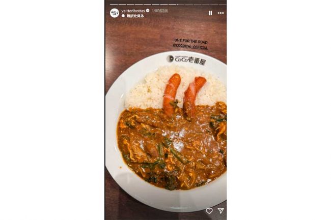 日本の人気チェーン店の虜になったF1レーサーが話題 「スポンサーのチャンス」「また行ってる笑」 2025.04.09 著者 : THE ANSWER編集部 キーワード : F1 Twitter Facebook B!Bookmark 【画像】「また食べてる笑笑」「ゴチしたい」 F1レーサーがチェーン店で食べたカレーの写真 (ボッタスのインスタグラムストーリーのスクリーンショット) こちらもオススメ▶︎F1の最新ニュースをチェック
