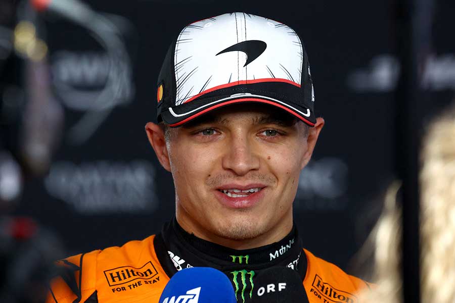 私服姿のランド・ノリス(マクラーレン)が舌鼓を打ったのはラーメンだった。赤い器に盛られた麺を箸ですくっている……というよりも、フォークでスパゲッティを巻きつけるような格好で箸を使っている。