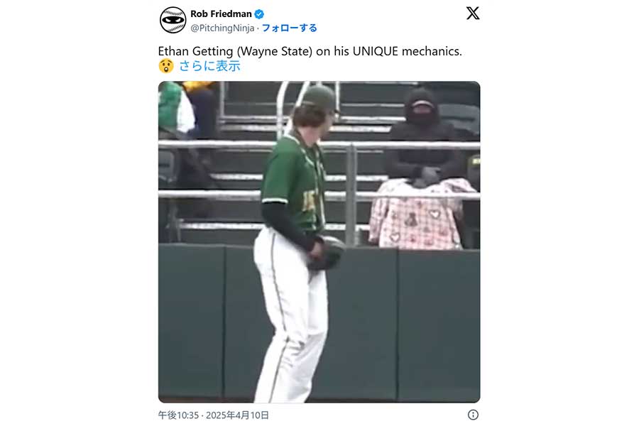 米国の大学球界に、上体を90度折り曲げるという超変則フォームの右腕が登場し話題となっている。X上の日本のファンも「本当に大リーグボール投げそう」「腰痛めないんか?」「サイドスローになるの?」と驚きの言葉を並べた。