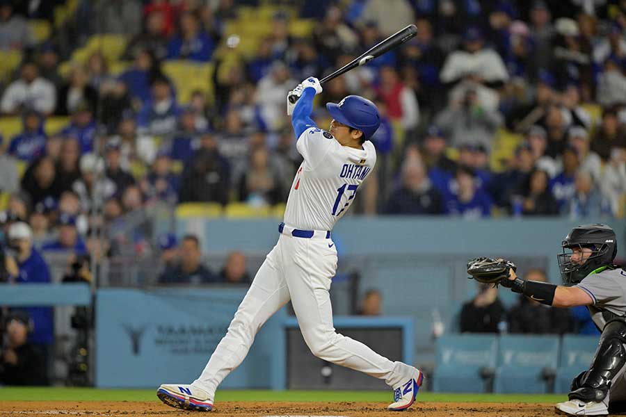 米大リーグ・ドジャースの大谷翔平投手は16日(日本時間17日)の本拠地ロッキーズ戦に「1番・DH」で先発出場。初回先頭の打席で2試合ぶりとなる6号同点ソロを放った。喜びの表情を見せた直後、ベンチでファウルボールが体に当たる不運もあった。
