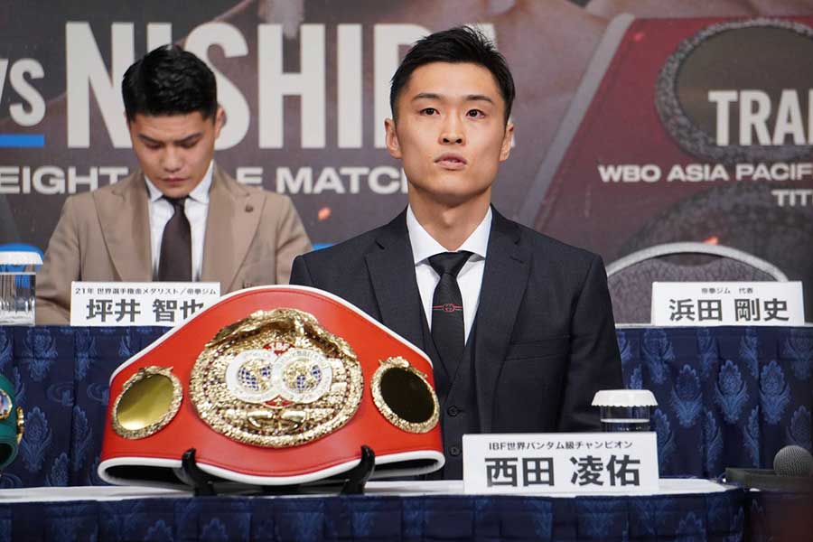 強い覚悟を持って戦いに挑む。西田は大事なベルトを前に置いて会見。「タイトルを返上してでも中谷選手に挑戦したいと思っていた。ベルトを懸けて中谷選手に挑戦できることがとてもうれしい」。長身のサウスポー同士の対決。「パンチ力が中谷選手の一番の強み。防御に特化して考えたい」とプランを練っている。井上戦を狙うWBC王者に「踏み台にはならない」とプライドを滲ませた。