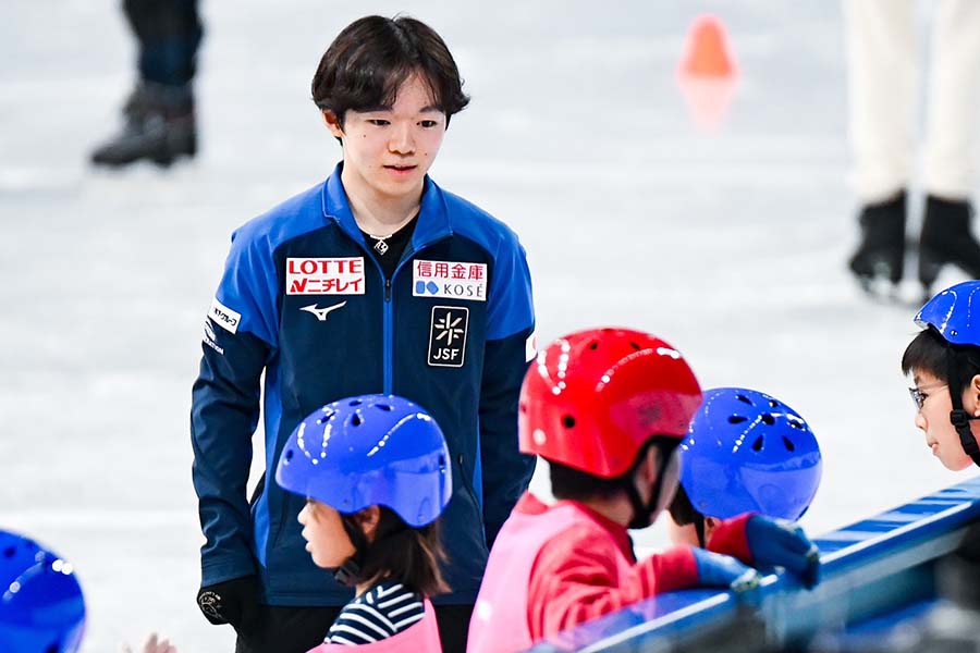 鍵山優真らが小学生にスケート教室 手つなぎ直接指導、ブラウンは日本語で「来てくれてアリガトウ」