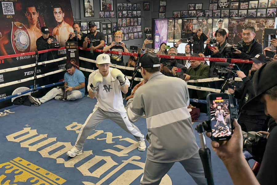 井上は23日に日本を出発。同日に定刻でロサンゼルスに到着し、空港から直接市内のWestSide Boxing Clubに向かって練習を公開した。午後2時開始の予定だったが、午後0時30分に到着。予定を早めて練習をスタートした。ジムには70人を超える日米の記者が集結。注目度の高さを示した。