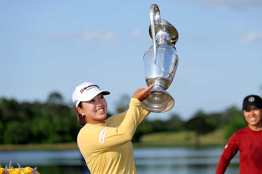 米女子ゴルフのメジャー初戦・シェブロン選手権は27日(日本時間28日)、米テキサス州のカールトンウッズ・クラブ(6911ヤード、パー72)で最終日を行った。23歳の西郷真央(島津製作所)は通算7アンダーで並んだ5人のプレーオフを制し、米ツアー初優勝を遂げた。激闘後、大会優勝者の恒例となっている池へのダイブを敢行。西郷たちの笑顔が弾けたが、水中では思わぬ事態が起きていた。