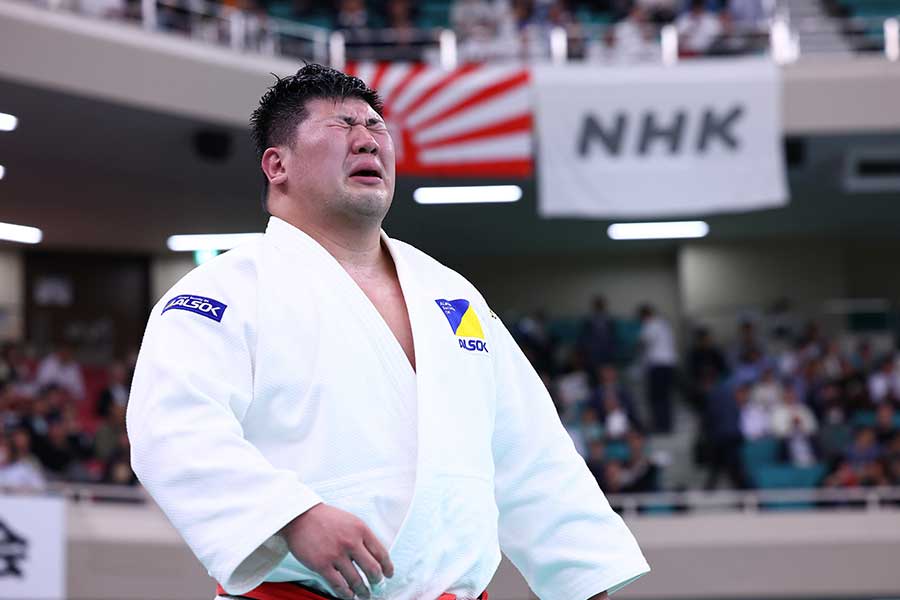 決勝の8分間、得意の大内刈りで奪った技ありを守り抜いて優勢勝ちを決めると、180センチ、135キロの香川は両手を広げて喜びを爆発させた。よほどうれしかったのだろう、主審から注意を受けながらもスタンドに向かって2度、3度とガッツポーズ。「何度も挑戦し、やっと頂点に立つことができました」と優勝インタビューで口にした。