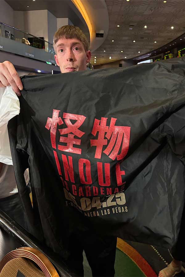 112秒殺で井上尚弥の虜に 英国からベガスまでやってきた34歳の熱狂的ファン、尚弥Tシャツで熱弁した好きな理由「見るたびに…」 2025.05.02 著者 : THE ANSWER編集部・鉾久 真大 キーワード : 井上尚弥 Twitter Facebook B!Bookmark 「これも買ったんだ」 マーシュさんが持っていた井上の「怪物」の文字が入ったジャケット【写真:編集部】 こちらもオススメ▶︎退場時に足を止め…井上尚弥、粋な振る舞いに米ファン大歓声
