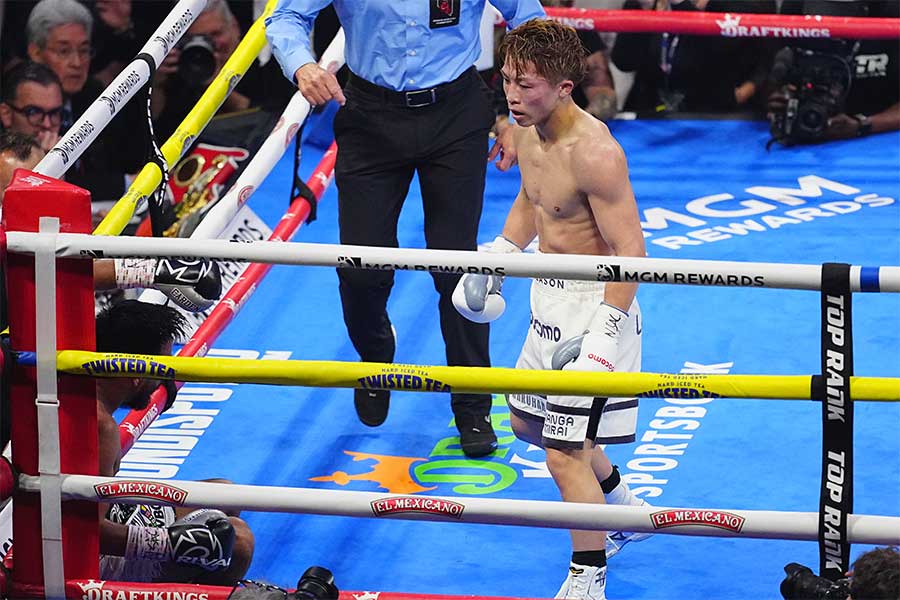 ボクシングの世界スーパーバンタム級4団体統一王者・井上尚弥(大橋)は4日(日本時間5日)、WBA世界同級1位ラモン・カルデナス(米国)との4団体防衛戦で8回45秒TKO勝ちした。会場には現役スター選手の姿もあり、TKO直後の花道で対面した場面を、海外ファンは「これはカッコいい」と絶賛している。