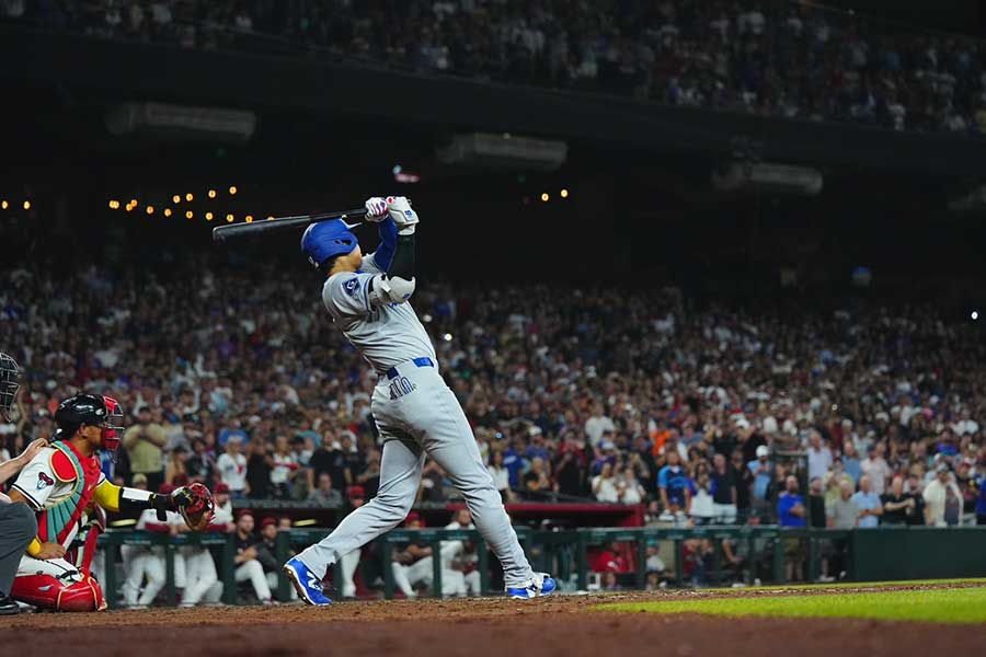 米大リーグ・ドジャースの大谷翔平投手は8日(日本時間9日)、敵地ダイヤモンドバックス戦に「1番・DH」でスタメン出場。9回2死から一矢報いる11号ソロを放った。試合は3-5で敗れたが、豪快アーチに米実況も「ボールを恐怖に陥れ続けている」と脱帽の声を上げていた。
