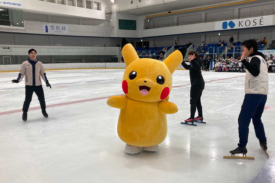 横浜市のコーセー新横浜スケートセンターで11日、ちょっと変わったイベントが行われた。日本スケート連盟が初心者を対象に行なっている「基礎スケート教室」の場に登場したのは、日本発の世界的な人気キャラクター「ピカチュウ」だ。スケートを履いて氷上を滑る姿に、子どもたちは驚きの声を上げた。実は五輪メダリストも大きな期待をかける、競技振興の切り札なのだ。