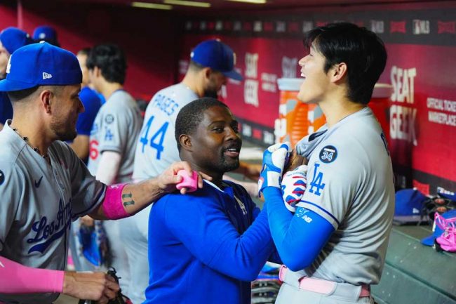 胸ぐらを掴まれた大谷翔平に何が? ベンチで絡んだ男性の正体は…“襲撃”にも笑顔の理由 2025.05.13 著者 : THE ANSWER編集部 キーワード : ドジャース • 大谷翔平 Twitter Facebook B!Bookmark 【画像】胸ぐら掴まれた後は…こんな展開に! 大谷も反撃?【写真:荒川祐史】 こちらもオススメ▶︎大谷翔平の最新ニュースをチェック