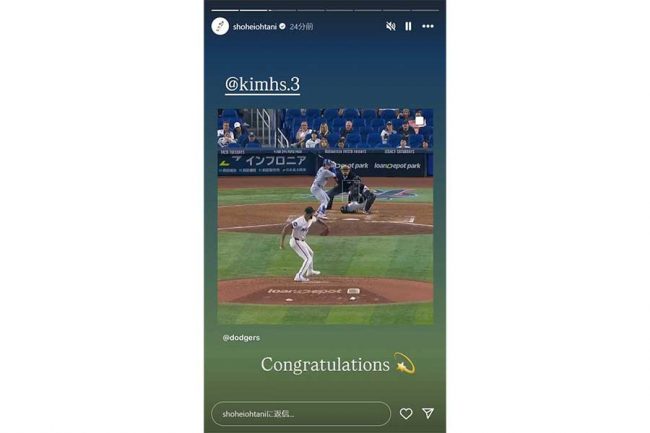 【画像】初HRのキムヘソンを祝福した大谷翔平のインスタグラムストーリー