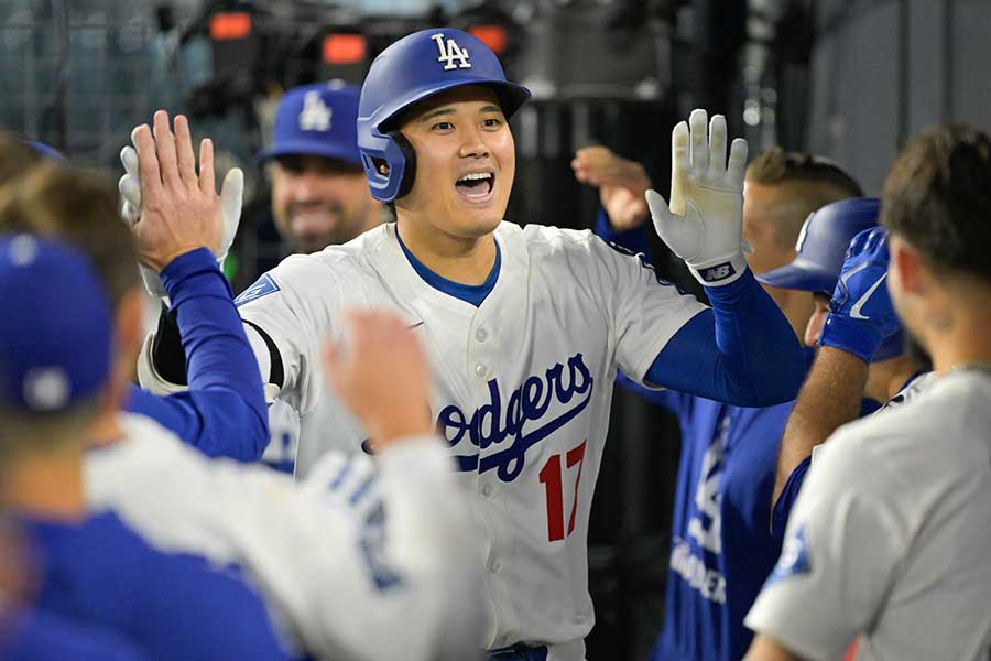 米大リーグ・ドジャースの大谷翔平投手は15日(日本時間16日)、本拠地アスレチックス戦に「1番・DH」で先発。3回1死一、二塁の好機で左翼に14号3ランを放った。打球初速102.9マイル(約165.6キロ)、飛距離382フィート(約116.4メートル)の一発。緩いボールを拾って逆方向へ飛ばす技術に、米記者からは驚きの声が上がった。