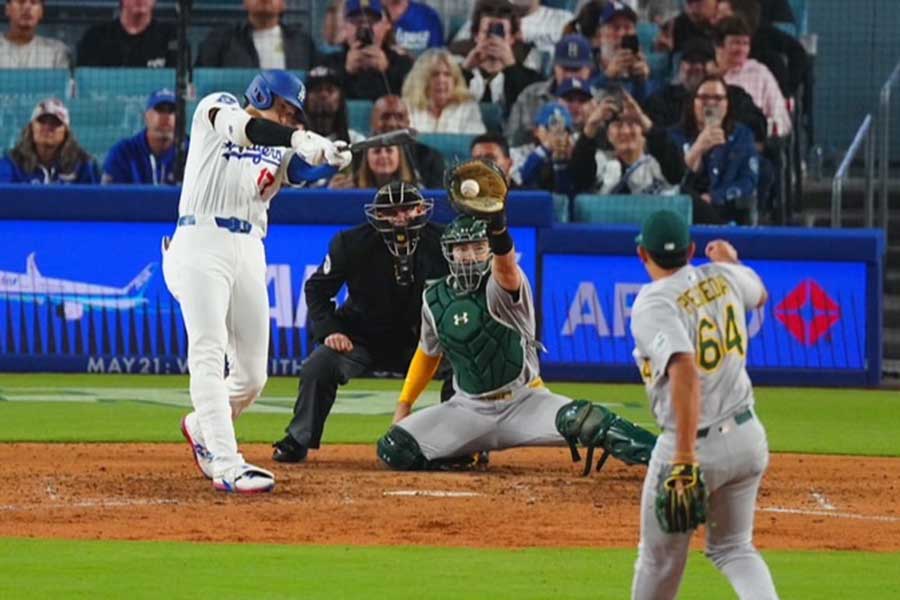 ただ、第6打席はよもやの展開に。アスレチックスは野手のペレダをマウンドへ。大谷は無死二、三塁で緩いボールに苦しみ、カウント1-1からファウル2球を打った後で空振り三振に倒れた。ペレダは大喜びで三振を取った記念球をベンチへ。結局32球を投げ、1イニングを4安打3失点だったが、唯一の三振を大谷から奪った。これにはドジャースの同僚たちも驚きを隠せない。
