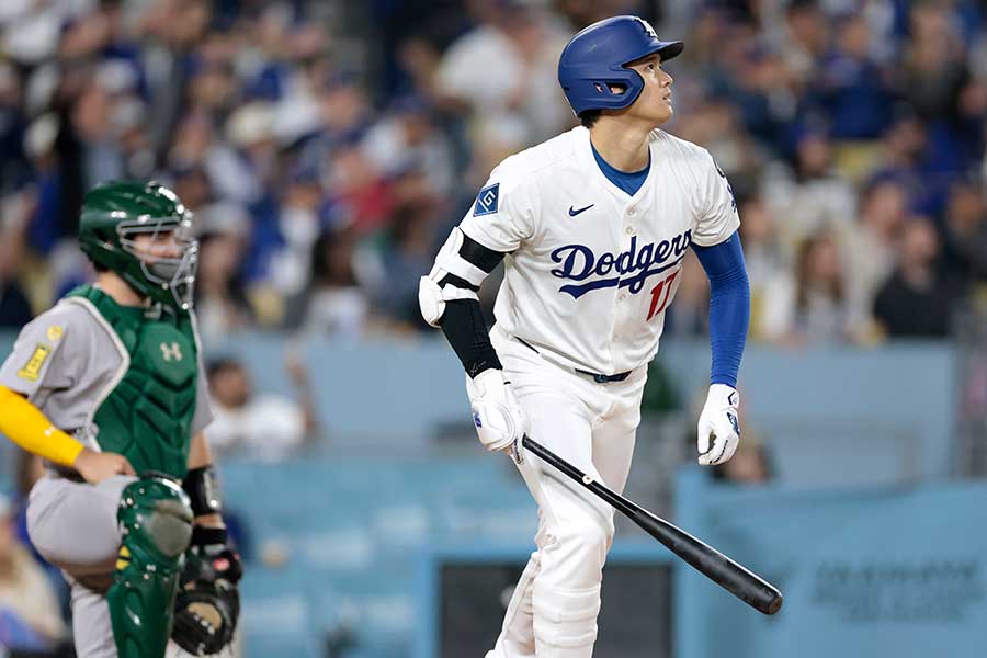 米大リーグ・ドジャースの大谷翔平投手は15日(日本時間16日)、本拠地アスレチックス戦に「1番・DH」で先発。3回に14号3ラン、4回に15号2ランと今季初の1試合2発を記録するなど、5打数2安打6打点でチームを19-2の大勝に導いた。米国のデータ提供会社「オプタスタッツ」は、42試合というスパンで残した数字が“前人未到”だと指摘した。