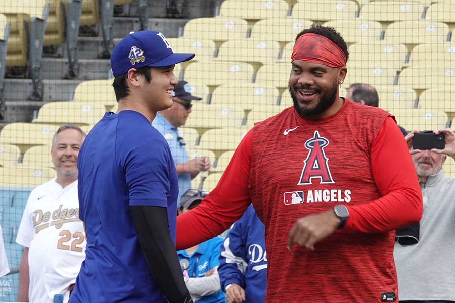 米大リーグ・ドジャースの大谷翔平投手は16日(日本時間17日)、本拠地エンゼルス戦に「1番・DH」で先発した。試合前には古巣の選手らと満面の笑みで交流。親しげにハグを交わした、現役最多のメジャー通算454セーブを誇る守護神ケンリー・ジャンセンからまさかの“お願い”を受けていた。