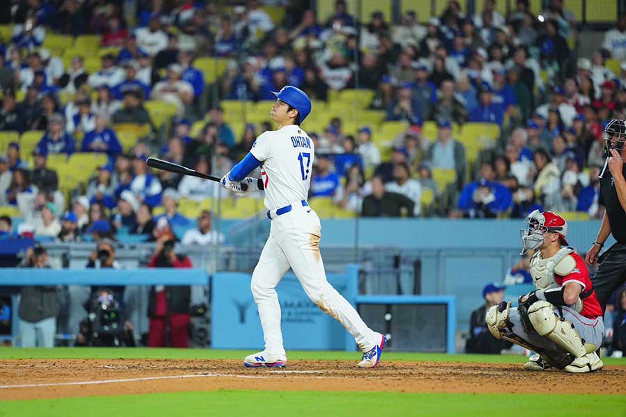 米大リーグ・ドジャースは16日(日本時間17日)、本拠地でエンゼルスと対戦した。大谷翔平投手は「1番・DH」で先発。今季初となる3試合連発の中越え16号ソロを叩き込んだ。