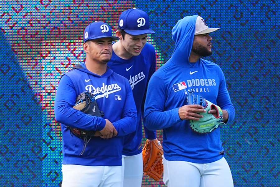 WBCでともに戦った大谷、山本との仲の良さはもちろん、同じく新人のキム・ヘソンが泥だらけになって生還した後に声をかけたり、同じくIL入りしたテオスカー・ヘルナンデス外野手とベンチで並ぶなどするシーンが見られている。