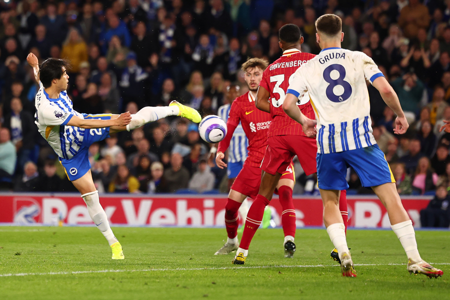 海外サッカー・イングランド1部プレミアリーグのブライトンに所属する日本代表MF三笘薫は19日(日本時間20日)、第37節リバプール戦に途中出場。1点を追う後半24分にボレーで同点ゴールを決めた。