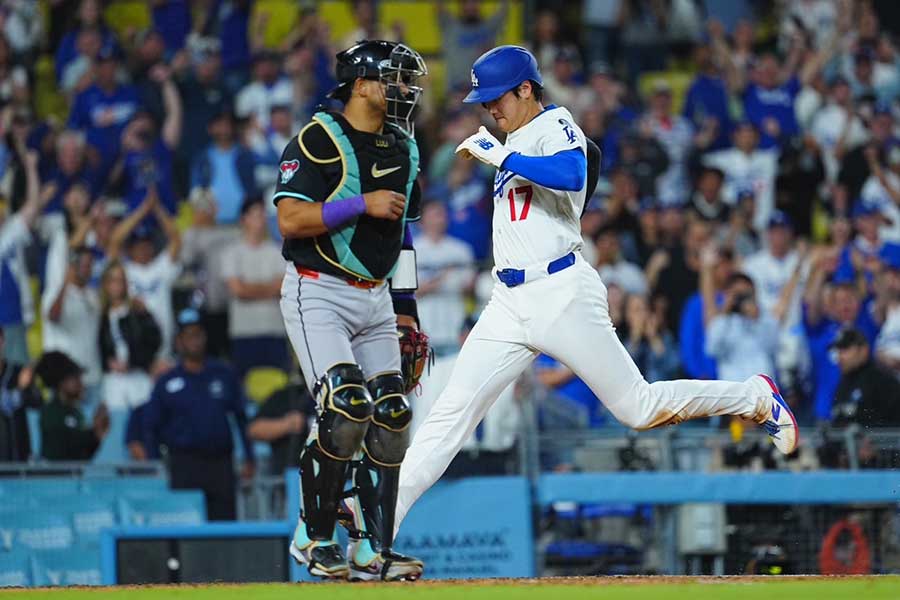 米大リーグ・ドジャースの大谷翔平投手は20日(日本時間21日)、敵地ダイヤモンドバックス戦に「1番・DH」で出場。1点差の延長10回、一発サヨナラのチャンスで打席を迎えたが、申告敬遠で勝負を避けられた。場内は大ブーイングとなったがその後、ドジャースは4-3で逆転サヨナラ勝ち。決勝のホームを大谷が踏み、連敗を4でストップした。先発・山本由伸は7回1安打無失点と快投も、6勝目はならなかった。