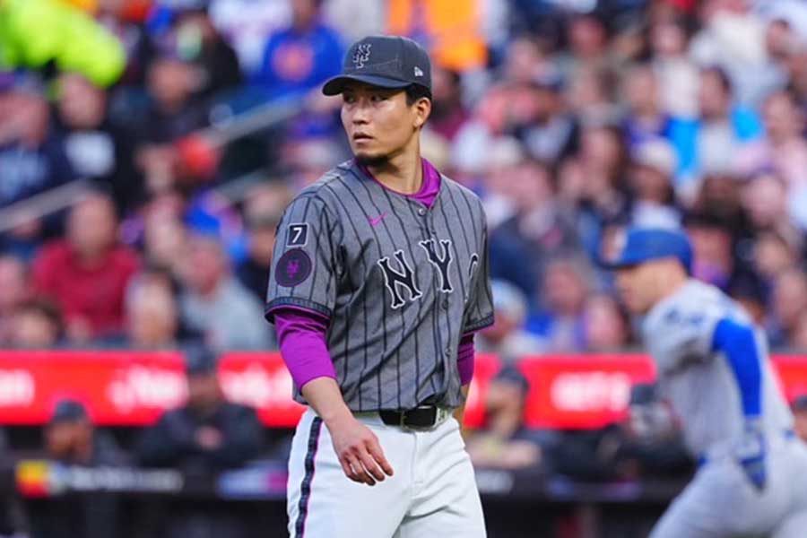米大リーグ・メッツの千賀滉大投手は25日(日本時間26日)、本拠地ドジャース戦に先発登板した。大谷翔平に18号先頭打者アーチを打たれるも、その後は得点を許さず5回1/3を1失点で降板。チームは3-1で勝利し、今季5勝目(3敗)を挙げた。ただ試合序盤には、グラブを交換するよう審判から命じられるシーンも。試合後は「言われたことはなかったので……」と戸惑い気味に、この場面を振り返った。