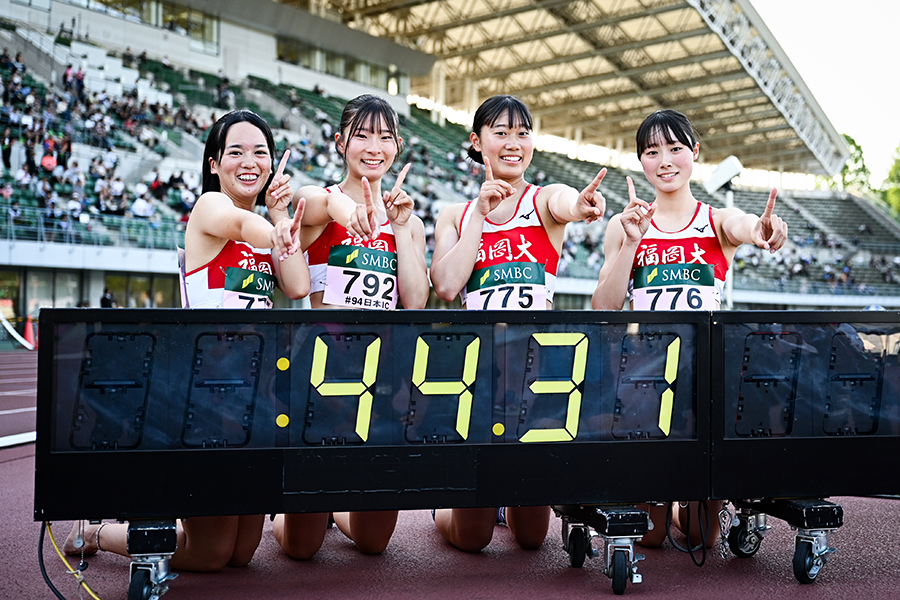 44秒31のタイムは福岡大(2021年)と甲南大(2025年)がマークしていた44秒51の日本学生記録を0秒2更新。ゴール後に抱き合い、涙する選手もいた。初日から飛び出した新記録に岡山・JFE晴れの国スタジアムはどっと沸いた。