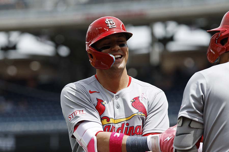 ヌートバーは6日(日本時間7日)、本拠地セントルイスでのドジャース戦に出場。試合前には大谷とグラウンドで笑顔の再会を果たした。