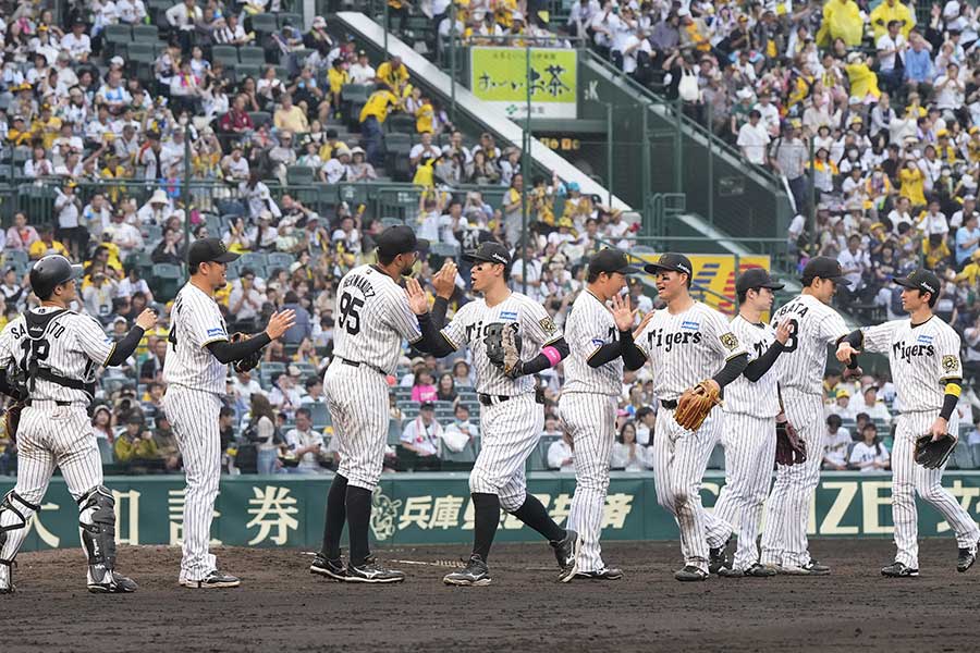 打線が好調だった阪神は、8回に主砲の佐藤輝明が満塁アーチを叩き込むなど、9安打で8得点をマーク。先発の伊原が5回を投げ、6安打2奪三振1失点に抑える好投もあり、オリックス相手に3連戦3連勝をマークした。