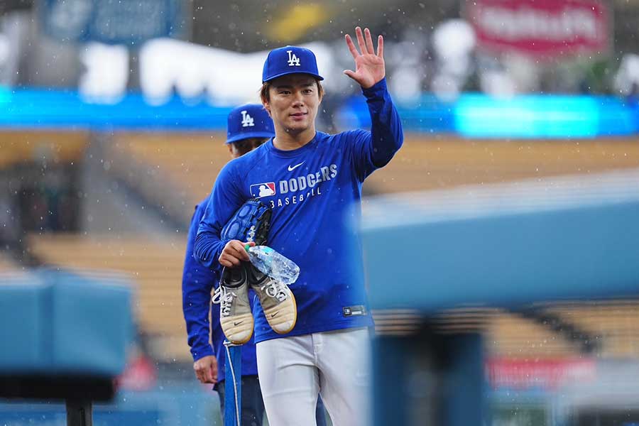 ペトコパークのグラウンドで、大谷はユニホーム姿。登板予定のない山本はパーカーをまとい、ダルビッシュはチームカラーのイエローのシャツを着用。3人が並び、グラウンド脇のフェンスに腰掛けて言葉を交わしていた。