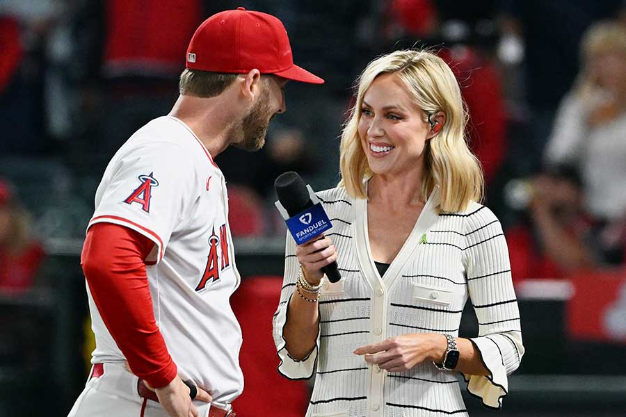 米大リーグ・エンゼルスは11日(日本時間12日)、本拠地アスレチックス戦で6-5と競り勝った。熱戦後の球場では、米カリフォルニア州地元局「ファンデュエル・スポーツ・ネットワーク・ウェスト」の人気女性レポーター、エリカ・ウェストンさんが、びしょ濡れ姿に。その瞬間を捉えた場面に、反響が広がった。