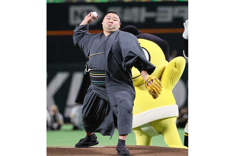球場がどよめいた。日本相撲協会とパ・リーグ6球団のコラボイベントでみずほPayPayドームに来場。着物姿でマウンドに上がると、振りかぶって右手から投じられた一球はノーバンで捕手のミットへ。見事なピッチングに客席から「おー!」と歓声が上がった。