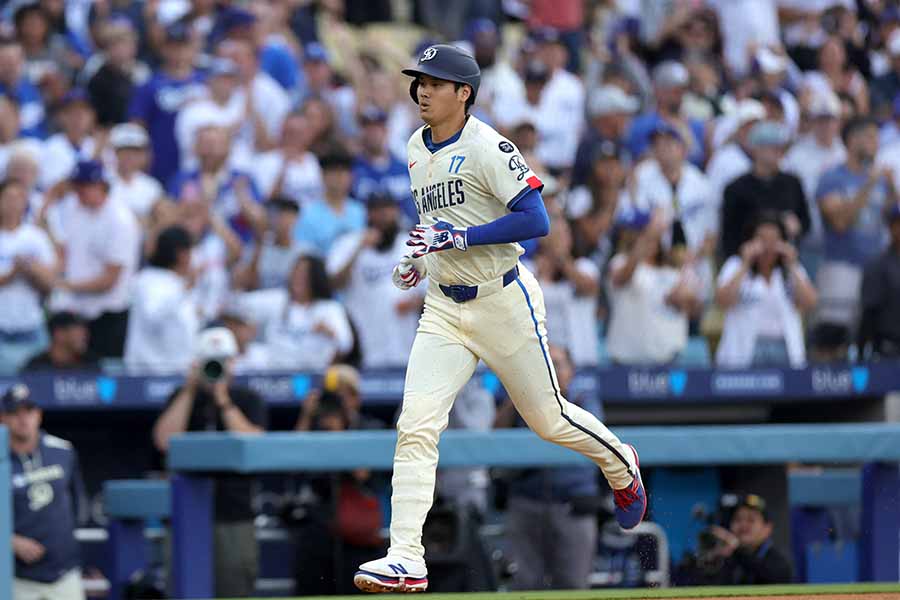 米大リーグ・ドジャースの大谷翔平投手は14日(日本時間15日)、本拠地ジャイアンツ戦に「1番・DH」で先発出場。初回の第1打席で今季24号先頭打者アーチを放った。これでメジャー史上2位の記録が生まれたと米記者が伝えている。