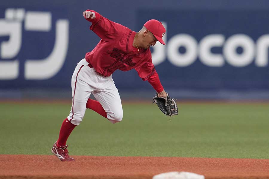 15日に行われたプロ野球交流戦、日本ハム―広島(エスコンフィールド)で飛び出したビッグプレーに反響が広がった。広島の「8番・遊撃」で先発した26歳・矢野雅哉内野手が素手で打球を掴んでそのまま送球。打者をアウトに仕留めた美技に驚きの声が広がった。