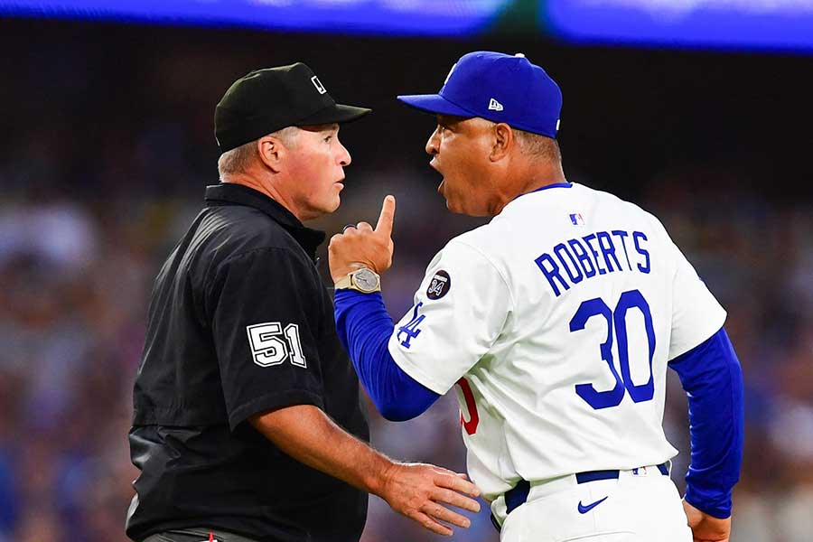これにロバーツ監督がベンチを飛び出て怒りの猛抗議。退場処分となってしまった。同地区のライバル同士の一戦。3回表、パドレスの攻撃では1番打者タティスJr.がトリビノから死球を受けていた。前日の試合ではドジャースのパヘスが死球を受け、緊迫したムードが漂っていた。