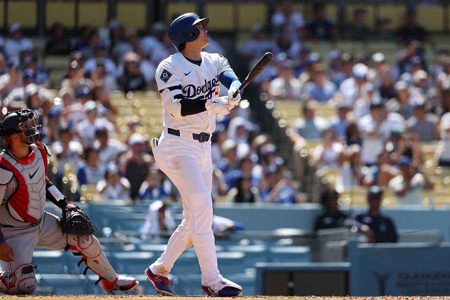 米大リーグ・ドジャースの大谷翔平投手は22日(日本時間23日)、本拠地ナショナルズ戦に「1番・投手兼DH」で先発出場。投手としては初回18球を投げて無安打無失点2奪三振と力投。打者としては4打数2安打5打点と活躍し、チームも13-7と勝利した。リーグ単独トップとなる今季26号2ランを放つと敵地の放送局では、ナショナルズOBが忘れられがちな事実を指摘していた。