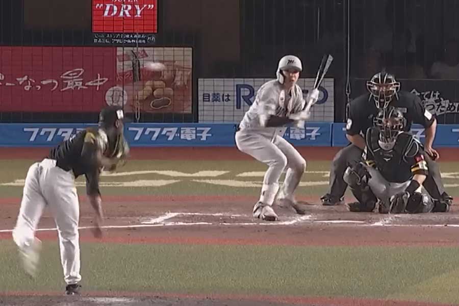 27日にZOZOマリンスタジアムで行われたロッテ戦の7回、ソフトバンクは1死一、二塁のピンチを背負った。マウンドにはモイネロ。打席の小川はセーフティバントを試みたものの三塁側ファウルグラウンドへの小フライとなり、三塁手の栗原が猛ダッシュからの好捕を見せた。