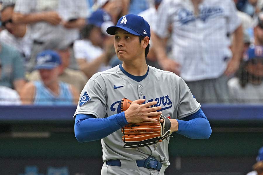 米大リーグ・ドジャースの大谷翔平投手は28日(日本時間29日)、敵地ロイヤルズ戦に「1番・投手兼DH」で先発出場。投手復帰3度目の登板で初めて複数イニングを投げ、2回を27球、1安打1三振1四球無失点だった。初回にメジャーのキャリアで自身最速となる101.7マイル(約163.6キロ)をマークする中、米国の投球分析家は89マイル(約143.2キロ)の“魔球”に「エグい」とうなっている。