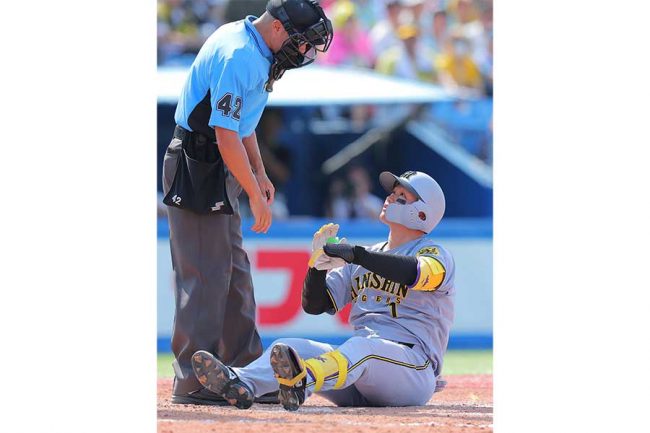 あわや頭部直撃…打席で倒れた阪神24歳、直後の行動をネット称賛「めちゃくちゃフェアプレー」正直アピールに好感