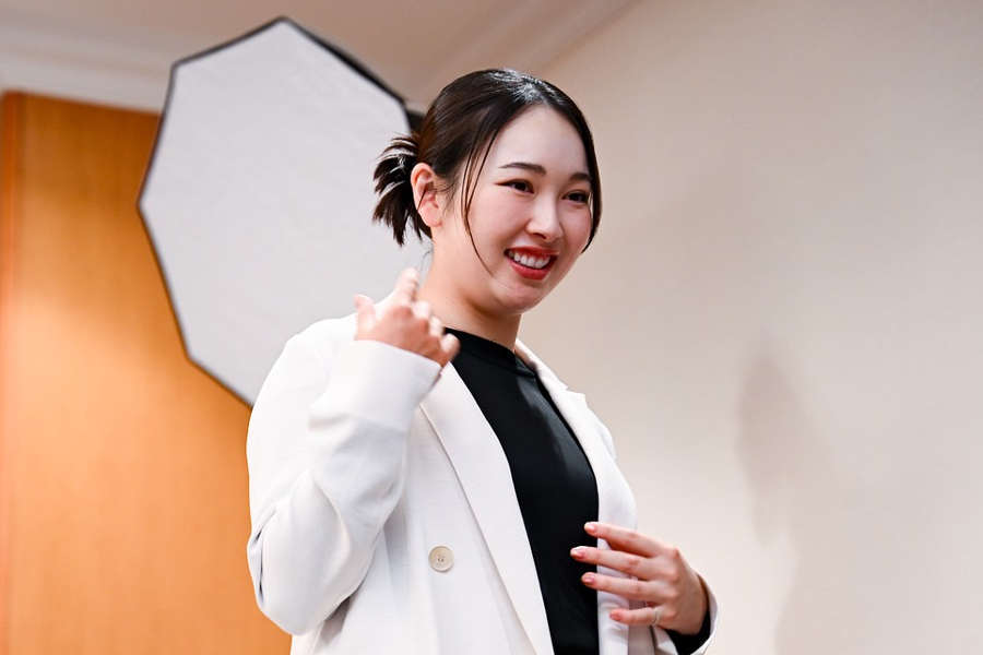 女子ゴルフの国内ツアー、資生堂・JALレディース(3日開幕、神奈川・戸塚CC)の前夜祭が1日、横浜市内のホテルで行われた。ツアー通算11勝の27歳・小祝さくらは白のセットアップ衣装で登場。ヘアスタイルは韓国発のトレンド「カチモリヘア」をオーダーした。