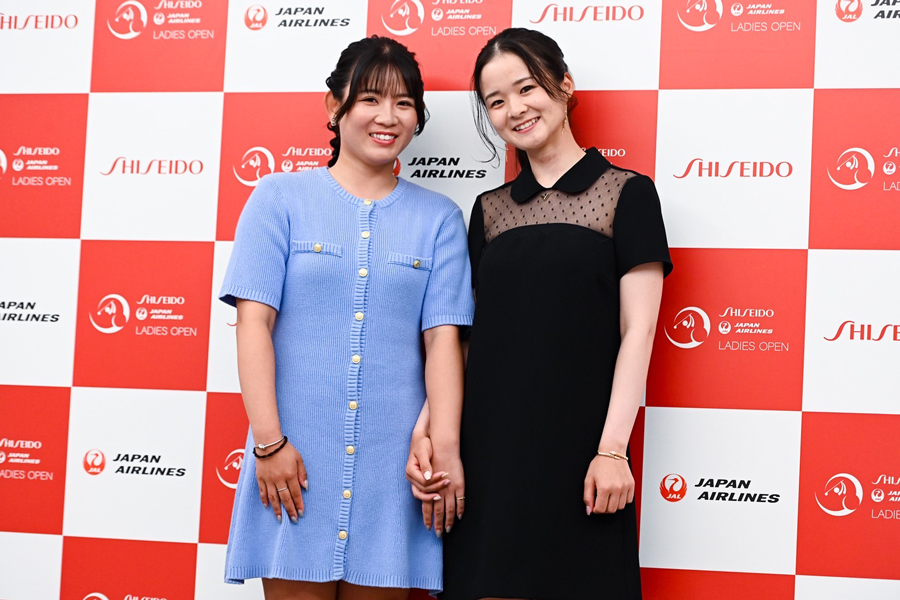 女子ゴルフの国内ツアー、資生堂・JALレディース(3日開幕、神奈川・戸塚CC)の前夜祭が1日、横浜市内のホテルで行われた。ツアー通算5勝の川崎春花と同1勝の吉本ひかるは仲良く2人でカメラの前に現れた。