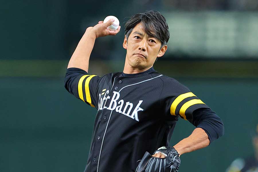 試合前のマウンドに視線が集中した。「ソフトバンクホークス誕生20周年デー in 東京」の記念試合に招かれ、ソフトバンクの背番号20を纏った反町。マウンドに立ち、右手から投げた球はノーバウンドで捕手のミットへ。ストライク投球に球場から大歓声が沸き起こり、小久保裕紀監督も拍手を送っていた。